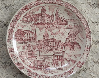 State Of Arkansas Plate Vernon Kilns Red Brown Transferware Etsy